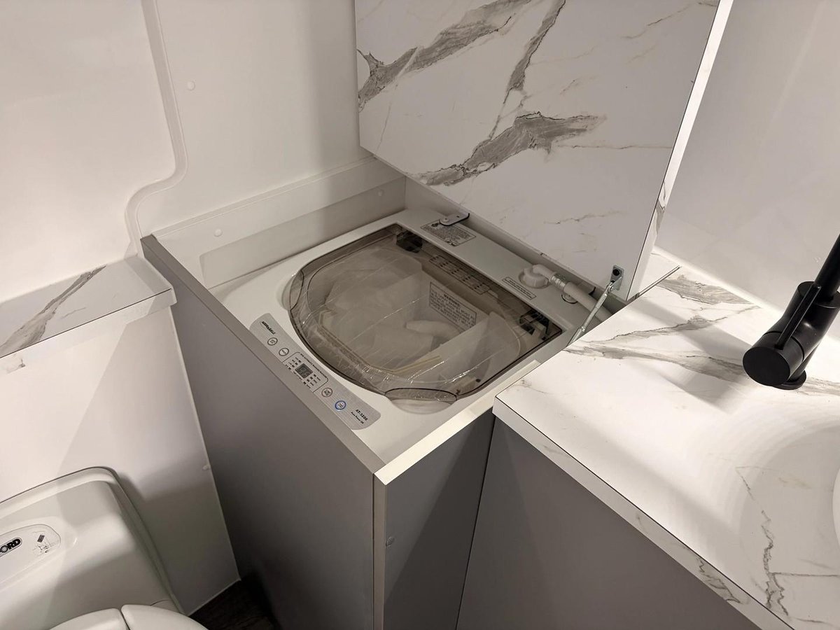 The party's not in town anymore; it's out in the wild. This spacious tandem-axle van is an entertainer's delight, with the off-grid features and extra solar power to get you to a secluded spot. Its interior is all about comfort for good times and great company on your adventure.